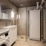 Lägenheten Ruka City Chalets, Ski-In Ski-Out, 2Ski Lift Pass har en bidé, en handikappdusch och en separat toalett för din komfort. Dessutom finns det hårtorkar, badlakan och handdukar.